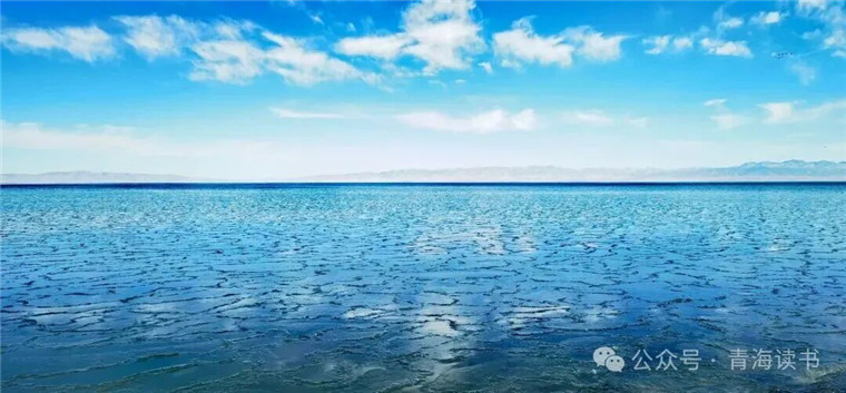 如果说夏季的青海湖有着“若把西湖比西子,浓妆艳抹总相宜。”的西子容颜,那冬日的青海湖一定是一位“轻罗小扇白兰花,纤腰玉带舞天纱”的下凡仙女。你看呐,如絮如雪的碎冰在阳光的照耀下泛着点点银光,轻风拂过,一团团一簇簇的碎冰恰似仙女扇下浮动的白兰花。极目远眺,山峦影影绰绰透着妩媚,簇拥着深邃而神秘的蓝色漫天铺开,好似仙女手中舞动的青纱。