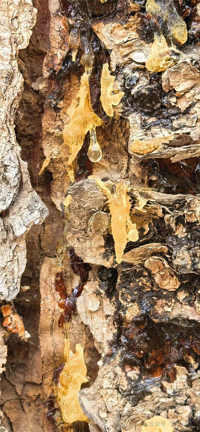 当风折了枝、虫蛀了干,树皮裂开一道伤口时,树身里细密的树脂道便会苏醒,分泌出黏稠如蜜的树脂。